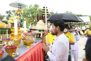โดยบิณฑ์ บรรลือฤทธิ์ ได้ร่วมกับมูลนิธิร่วมกตัญญู และครอบครัวบรรลือฤทธิ์ จัดพิธีบวงสรวงขึ้นอย่างต่อเนื่องมา กว่า 30 ปี แล้ว ซึ่งตรงกับวันที่ 20 กันยายน ของทุกปี ในพิธีจะมีการถวายเค้กยักษ์ขนาด 596 ปอนด์ ต่อพระองค์ท่าน โดยในปีนี้จัดขึ้นเป็นการภายในเฉพาะเจ้าหน้าที่และผู้ที่ได้รับเชิญเท่านั้น เพื่อเป็นไปตามนโยบายการควบคุมการแพร่ระบาดของโรคติดต่อเชื้อไวรัส โควิด-19 อย่างเคร่งครัด