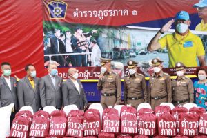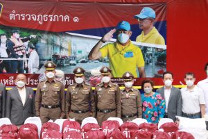 เมื่อวันที่ 18 ตุลาคม 2564 “ผู้การถั่ว”พล.ต.ต.ชุมพล พุ่มพวง ผู้บังคับการตำรวจภูธรจังหวัดสมุทรปราการ จับมือ”เฮียเอี๋ยว”นายสุดใจ จิรยาภากร ประธานที่ปรึกษา กต.ตร.จังหวัดสมุทรปราการ และนายสมชัย มหาสิทธิวัฒน์(เฮียคี้) นายธงชัย อัศวสุขี นายสิรภพ จิรยาภากร นายพันทวี รักศมีธีติ นายฐานวัฒน์ ไกรศักดาวัฒน์ นายเลิศศักดิ์ เลิศอริยานันท์ พร้อม คณะกต.ตร.จังหวัดสมุทรปราการ ปันน้ำใจ มอบถุงยังชีพ จำนวน 1,225 ชุด มูลค่า 1 ล้านบาท มอบเรือท้องแบนลำใหญ่ พร้อมเครื่องยนต์ จำนวน 2 ลำ มูลค่า 2 แสนบาท ให้กับกองบัญชาการตำรวจภูธร ภาค 1 เพื่อนำไปช่วยเหลือผู้ที่ได้รับผลกระทบจากน้ำท่วมในพื้นที่ภาค 1 โดยมีพล.ต.ท.จิรพัฒน์ ภูมิจิตร ผู้บัญชาการตำรวจภูธร ภาค 1 เป็นผู้แทนรับมอบครั้งนี้ เพื่อดำเนินการตามวัตถุประสงค์ต่อไป