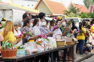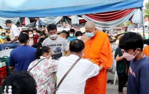 พระครูสุธรรมวิธาน (อาจารย์สาม) เจ้าอาวาสวัดตำหรุ สืบสานประเพณีออกพรรษา “ตักบาตรเทโวโรหณะ“ ประจำปี 2564