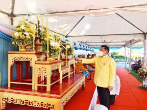 เมื่อเวลา 14.00 น.วันที่ 26 ตุลาคม 2564 ที่บริเวณองค์พระสมุทรเจดีย์ ต.ในคลองบางปลากด อ.พระสมุทรเจดีย์ จ.สมุทรปราการ นายวันชัย คงเกษม ผู้ว่าราชการจังหวัดสมุทรปราการ เป็นประธานพิธีขบวนแห่ผ้าห่มองค์พระสมุทรเจดีย์ โดยมี นางนงรัตน์ คงเกษม นายกเหล่ากาชาดจังหวัดสมุทรปราการ นายศุภมิตร ชิณศรี นายชัยพจน์ จรูญพงษ์ รองผู้ว่าราชการจังหวัดสมุทรปราการ นายสุเมธ ธีรนิติ รองผู้ว่าราชการจังหวัดสมุทรปราการ นายสัญญา จีระออน ผู้พิพากษาหัวหน้าศาลจังหวัด น.ส.นันทิดา แก้วบัวสาย นายก อบจ.สมุทรปราการ น.ส.ชนม์ทิดา อัศวเหม เลขานุการนายก อบจ. นายเจนเจตน์ เจนนาวิน ปลัดจังหวัดสมุทรปราการ นายภูธนะ ชมภูมิ่ง หัวหน้าสำนักงานจังหวัดสมุทรปราการ หัวหน้าส่วนราชการ ผู้นำท้องถิ่น ภาคเอกชน และประชาชนเข้าร่วม
