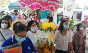 เมื่อเวลา 10.00 น.วันที่ 7 ต.ค.64 ที่วัดราษฎร์นิยมธรรม (วัดคลองสี่) ตำบลบางปลา อำเภอบางพลี สมุทรปราการ คณะพระภิกษุสงฆ์ วัดราษฎร์นิยมธรรม ร่วมกับ คณะกรรมการ ไวยาวัจกร และพุทธศาสนิกชนชาวชุมชนคลองสี่ จัดงานทอดกฐินสามัคคี ประจำปี 2564 ขึ้น โดยมี นางละมูล ขาวสบาย และบุตร-ธิดา ครอบครัวขาวสบาย พร้อมด้วย หน่วยงานราชการ กลุ่มผู้นำชุมชน และพ่อค้า ประชาชน ร่วมบุญเป็นเจ้าภาพ แห่องค์กฐิน และถวายผ้ากฐิน จัดตั้งโรงทาน ถวายภัตตาหารเพลแด่พระภิกษุสงฆ์ วัดราษฎร์นิยมธรรม จำนวน 25 รูป เนื่องในโอกาสประเพณีทอดกฐินสามัคคี ประจำปี 2564 โดยมี พระครูสถิตปุญญานุวัฒน์ (บุญเอิบ) เป็นประธานฝ่ายสงฆ์ เจริญพระพุทธมนต์ ภายใต้ มาตรการป้องกันการแพร่ระบาดของโรคติดต่อเชื้อไวรัส โควิด-19
