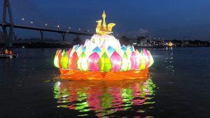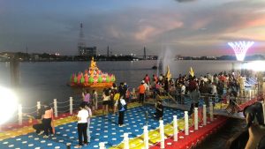 เทศบาลเมืองพระประแดง ประดับตกแต่งไฟ แสงสี กระทงยักษ์ พร้อมน้ำพลุลอยกลางลำน้ำเจ้าพระยาและวิวสะพานที่สวยที่สุดในประเทศไทย ไว้ต้อนรับประชาชนและนักท่องเที่ยวได้ร่วมกันลอยกระทง ประจำปี ๒๕๖๔ ณ ลานคนเมืองนครเขื่อนขันธ์ริมน้ำเจ้าพระยา