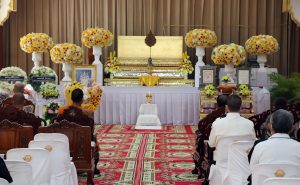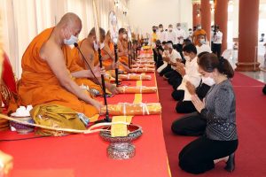 โดยมี พระเถรานุเถระ พระภิกษุสามเณร วัดพิชัยสงคราม พร้อมด้วย นางเนตรทิพย์ เจริญวัย ผู้อำนวยการสำนักงานพระพุทธศาสนาจังหวัดสมุทรปราการ นายพินิจ อ่วมสะอาด ไวยาวัจกรวัดพิชัยสงคราม คุณบานชื่น บัวระบัด ผู้แทนวัฒนธรรม จังหวัดสมุทรปราการ นายณัฐพล นุชอุดม ผู้อำนวยการโรงเรียนอนุบาลวัดพิชัยสงคราม นายพลากร เทศน์นำ นายกพุทธสมาคมจังหวัดสมุทรปราการ นางภาวิณี ครุฑปักษี นางเมทินี พาทยโกศล รองผู้อำนวยการโรงเรียนอนุบาลวัดพิชัยสงคราม ตลอดจนแขกผู้มีเกียรติ และเหล่าบรรดาศิษยานุศิษย์ พระเดชพระคุณหลวงพ่อพระราชสมุทรเมธี ร่วมกัน ถวายเครื่องไทยธรรม ทอดผ้าบังสุกุล พระสงฆ์อนุโมทนา กรวดน้ำ รับพร ถวายภัตตาหารเพล