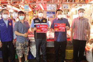 นายวันชัย คงเกษม ผู้ว่าราชการจังหวัดสมุทรปราการ พร้อมด้วยหน่วยที่เกี่ยวข้องลงพื้นที่ ติดตามสถานการณ์ราคาสินค้าอุปโภค บริโภค และโครงการพาณิชย์ลดราคาช่วยประชาชน จำหน่ายราคาหมูเนื้อแดงกิโลกรัมละ 150 บาท บริเวณตลาดปากน้ำ(วิบูลย์ศรี) และตลาดบางฆ้อง อำเภอเมืองสมุทรปราการ โดยภายในตลาดทั้ง 2 แห่ง ยังคงมีประชาชนออกมาซื้อสินค้าอุปโภคอย่างต่อเนื่อง