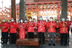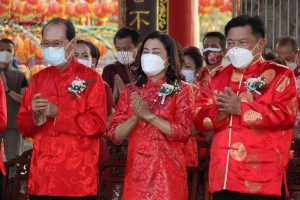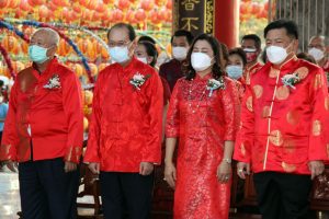 โดยในวันนี้บรรยากาศวันหยุดช่วงใกล้เทศกาลตรุษจีน ประชาชนในพื้นที่สมุทรปราการและพื้นที่ใกล้เคียง ต่างสวมชุดสีแดงโดยเฉพาะสาวๆ ต่างสวมชุดกีเพ้ามาถ่ายรูป ณ.มูลนิธิธรรมกตัญญู (เสียนหล่อไต้เทียนกง) หรือศาลเจ้า 5 พระองค์ ต.บางปูใหม่ อ.เมือง จ.สมุทรปราการ ทำให้วันหยุดสัปดาห์นี้ต่างคึกคักต่างคึกคักเป็นพิเศษ เพื่อมาไหว้เทพเจ้าขุนศึก 5 พระองค์ ไหว้เทพเจ้าไท้ส่วยเอี้ย 60 พระองค์ ที่มีครบแห่งเดียวในประเทศไทย รวมถึงพระแม่กวนอิม พระแม่บังเกิดเกล้า และเทพเจ้าหว่ายไซเย่ และที่นี่ในการแก้ปีชง ที่มูลนิธิธรรมกตัญญู(เสียนหล่อไต้เทียนกง) จะให้ประชาชนที่เกิดปีชงเขียนชื่อ นามสกุล ปีเกิด ลงบนแผ่นทองติดไว้กับเสาหินแกะสลักให้อยู่กับเทพเจ้าหรือฝากดวงกับเทพเจ้านั้นเองพิธีการไม่เหมือนที่อื่นๆ แน่นอน และในปีนี้กำหนดจัดให้ชมฟรี ระหว่างวันที่ 28 มกราคม – 20 กุมภาพันธ์ 2565 พิกัดไม่ยาก เลยเมืองโบราณบางปู เพียง 200 เมตร ก็ถึงมูลนิธิธรรมกตัญญู (เสียนหลอไต้เทียนกง) หรือศาลเทพเจ้า 5 พระองค์ ถนนสุขุมวิท กม. 34 ตำบลบางปู อำเภอเมืองสมุทรปราการ และในวันที่ 31 ตั้งแต่เวลา 22.00 น. จะมีการเปิดประตู ปิดประตู ต้อนรับตรุษจีนปีขาลอย่างเป็นทางการอีกด้วย ซึ่งใครอยากจะมาขอพรเทพเจ้า 5 พระองค์ สามารถเดินทางมาได้
