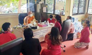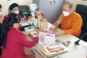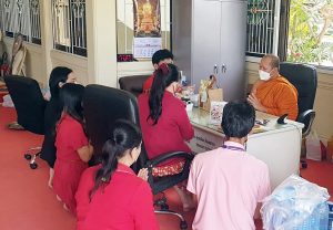 เมื่อวันที่ 1 กุมภาพันธ์ 2565 ดร.รุ่งสุรีย์ สิงหราช ผู้อำนวยการโรงเรียนหาดอมราอักษรลักษณ์วิทยา พร้อมด้วย น.ส.ชฎากาญจน์ สุขเกษม รองผู้อำนวยการกลุ่มบริหารงานทั่วไปฯ และคณะครู โรงเรียนหาดอมราอักษรลักษณ์วิทยา เข้ากราบขอพรปีใหม่ พระมหาวิโรจน์ อคฺคปญฺโญ ผู้ช่วยเจ้าอาวาสวัดพุทธภาวนาราม เพื่อเป็นสิริมงคลเนื่องในวันขึ้นปีใหม่ 2565 ณ สำนักงานวัดพุทธภาวนาราม ต.ท้ายบ้านใหม่ อ.เมือง จ.สมุทรปราการ