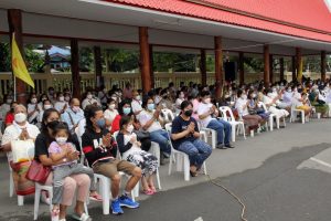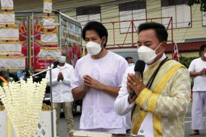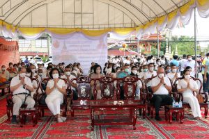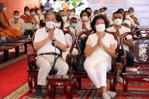 โดยมี พระครูปลัดสุวัฒนศีลคุณ (พระครูแจ้) เจ้าอาวาสวัดบางพลีใหญ่กลาง เป็นประธานฝ่ายสงฆ์ พร้อมด้วย ท่านพระครูธีระธรรมมานันท์ เจ้าคณะแขวงบางแวก เจ้าอาวาสวัดบางแวก นายฉะโอด รุ่งเรือง นายภูมินันท์ ขวัญเมือง นายโสภณ มหาบุญ ไวยาวัจกร วัดบางพลีใหญ่กลาง นายชัยพจน์ จรูญพงศ์ รองผู้ว่าราชการจังหวัดสมุทรปราการ นางธารตะวัน จรูญพงศ์ รองนายกเหล่ากาขาดจังหวัดสมุทรปราการ พล.ต.ต.ชุมพล พุ่มพวง ผบก.ภ.จว.สมุทรปราการ นายธวัชชัย นามสมุทร ผู้ช่วยเลขาธิการศอ.บต. นายสมศักดิ์ แก้วเสนา นายอำเภอบางพลี นายบิณฑ์ บันลือฤทธิ์ ผู้จัดการฝ่ายกิจกรรมพิเศษมูลนิธิร่วมกตัญญู ดร.วีร์สุดา รุ่งเรือง นายก อบต.บางพลีใหญ่ พ.ต.อ.กรวัฒน์ หันประดิษฐ์ รอง ผบก.ภ.จว.ชลบุรี พ.ต.อ.วิโรจน์ ตัดโส ผกก.สภ.บางพลี พ.ต.อ.พิสูทธิ์ จันทรสุวรรณ ผกก.สภ.บางปู พ.ต.อ.เติมรัศมิ์ จินดาวัฒน์ ผกก.สภ.เมืองสมุทรปราการ พร้อมทั้ง คหบดีผู้ใจบุญ ตัวแทน บริษัท อริยะอีควิปเม้นท์ จำกัด ข้าราชการตำรวจ สภ.บางพลี ทีมแพทย์ พยาบาล โรงพยาบาลบางพลี เจ้าหน้าที่ศูนย์แพทย์ชุมชนวัดบางพลีใหญ่กลาง ทีมงาน อสม.ต.บางพลีใหญ่ ตลอดจน อุบาสก อุบาสิกา และพ่อค้า ประชาชน ชาวอำเภอบางพลี เข้าร่วมพิธีกันอย่างพร้อมเพรียง