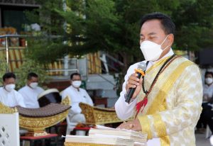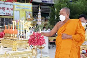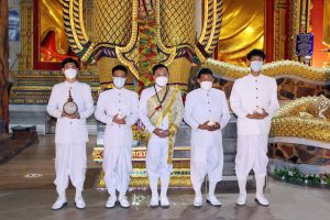 คณะสงฆ์ วัดบางพลีใหญ่กลาง เจริญพระพุทธมนต์ธัมมจักรกัปปวัตนสูตร ในพิธีพุทธาภิเษกวัตถุมงคลท้าวเวสสุวรรณ