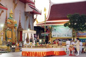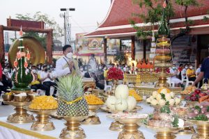 เมื่อเวลา 15.00 น.ของวันที่ 24 กุมภาพันธ์ 2565 พระครูปลัดสุวัฒนศีลคุณ พระครูแจ้ เจ้าอาวาสวัดบางพลีใหญ่กลาง นำคณะสงฆ์ วัดบางพลีใหญ่กลาง เจริญพระพุทธมนต์ธัมมจักรกัปปวัตนสูตร ในพิธีพุทธาภิเษกวัตถุมงคลท้าวเวสสุวรรณ ภายในวิหารศักดิ์สิทธิ์หลวงพ่อทอง พระประธานองค์แรกของวัดบางพลีใหญ่กลาง อายุร่วม 200 ปี จากนั้น พระครูปลัดสุวัฒนศีลคุณ พระครูแจ้ เจ้าอาวาสวัดบางพลีใหญ่กลาง ได้ร่วมกับ ไวยาวัจกรวัดบางพลีใหญ่กลาง นายฉะโอด รุ่งเรือง นายภูมินันท์ ขวัญเมือง และอุบาสก อุบาสิกา ประกอบพิธีบวงสรวงองค์ “ท้าวเวสสุวรรณ”และองค์”ท้าวกุมภัณฑ์” ณ บริเวณลานหน้าพระมหาวิหารพระนอน วัดบางพลีใหญ่กลาง ตำบลบางพลี อำเภอบางพลี จังหวัดสมุทรปราการ โดยมี พราหมณ์ ณฐกร โทนะศรี จากหอบรมครูพระพิราพสถิตย์ เป็นเจ้าพิธีบวงสรวงในครั้งนี้