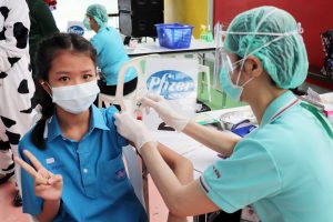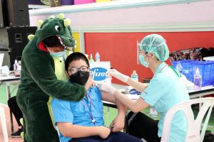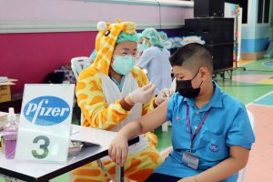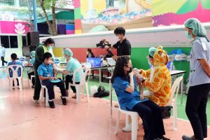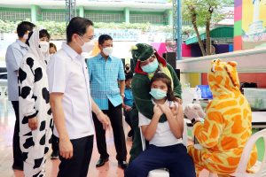 จังหวัดสมุทรปราการ รณรงค์ฉีดวัคซีนโควิด-19 ในเด็กที่อายุ 5-11 ปี โดยนักเรียนระดับชั้นประถมศึกษาปีที่ 5 และปีที่ 6 จากโรงเรียนอนุบาลวัดพิชัยสงคราม เข้ารับการฉีดวัคซีน เพื่อป้องกันโควิด-19