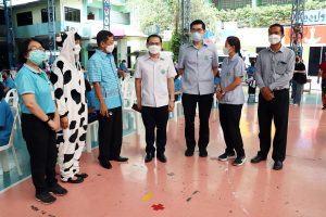 เมื่อวันที่ 19 กุมภาพันธ์ 2565 เวลา 10.00 น. ที่โรงเรียนอนุบาลวัดพิชัยสงคราม ตำบลปากน้ำ อำเภอเมืองสมุทรปราการ สำนักงานสาธารณสุขจังหวัดสมุทรปราการ ได้ดำเนินการฉีดวัคซีนป้องกันโควิด-19 ในเด็กอายุ 5-11 ปี ให้กับนักเรียนระดับชั้นประถมศึกษาปีที่ 5 และปีที่ 6 โรงเรียนอนุบาลวัดพิชัยสงคราม จำนวน 200 คน โดยมี นายแพทย์ นเรศฤทธิ์ ขัดธะสีมา นายแพทย์สาธารณสุขจังหวัดสมุทรปราการ พร้อมคณะ ได้ลงพื้นที่ติดตามการดำเนินการฉีดวัคซีนโควิด-19 ให้แก่ กลุ่มเด็กนักเรียน อายุ 5-11 ปี เพื่อเป็นการสร้างความเชื่อมั่นให้กับผู้ปกครอง หลังจากที่โรงเรียนได้เปิดทำการเรียนการสอน แบบ on –site และเป็นการป้องกันและควบคุมการแพร่ระบาดของโรคโควิด-19 โดยมีนายณัฐพล นุชอุดม ผู้อำนวยการโรงเรียนอนุบาลวัดพิชัยสงคราม พร้อมคณะครู ร่วมให้การต้อนรับ และอำนวยความสะดวก