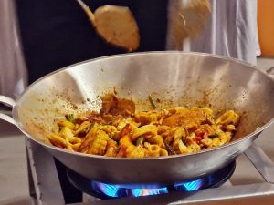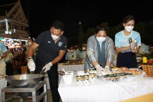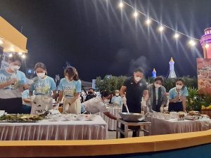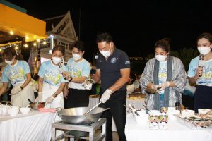 เมื่อเวลา 19.00 น.ของวันที่ 25 ก.พ.65 ที่บริเวณลานด้านหน้าศาลากลางจังหวัดสมุทรปราการ เอ๋ ชนม์สวัสดิ์ อัศวเหม ประธานหอการค้าจังหวัดสมุทรปราการ พร้อมด้วย น.ส.นันทิดา แก้วบัวสาย นายกองค์การบริหารส่วนจังหวัดสมุทรปราการ น.ส.ชนม์ทิดา อัศวเหม เลขานุการนายก อบจ. และ น.ส.พิม อัศวเหม สมาชิกสภา อบจ.สมุทรปราการ เข้าครัวเอ๋ทะเลถัง ทำเมนูใบกัญชาชุบแป้งทอด พร้อมโขว์สูตรทำ กุ้งถัง ทะเลถัง เอาใจสายซีฟู๊ด บอกเลยว่าดูหน้าตาอลังการเหมือนจะทำยาก แต่ที่จริงแล้วทำง่ายๆ ไม่ซับซ้อนแถมทำขายก็ได้กำไรดีต่อใจ โดยนำวัตถุดิบจากกลุ่มเกษตรกรมาจัดทำเมนูสุดฟิน ทั้งนี้ เพื่อเป็นการต่อยอดอาหารประจำถิ่นเดิมสู่ระดับสากล โดยการนำอาหารที่มีอยู่เดิม ของคนท้องถิ่นรสชาติน่ารับประทานอยู่แล้ว มาต่อยอดภายในงาน “เที่ยวถิ่น กินอร่อย สมุทรปราการ ภายใต้กิจกรรมส่งเสริมการท่องเที่ยวจังหวัดสมุทรปราการ กับครัวเอ๋ทะเลถัง