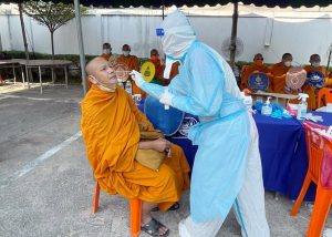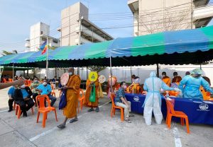 โดยมี นางสาวระพีพร พัฒนะแสง หัวหน้าสำนักงานตรวจบัญชีสหกรณ์สมุทรปราการ นายพรศักดิ์ คุณวุฒิมโนธรรม ประธานคณะกรรมการดำเนินการสันนิบาตสหกรณ์จังหวัดสมุทรปราการ นายเกรียงไกร นาคเอี่ยม ผู้อำนวยการกลุ่มจัดตั้งและส่งเสริมสหกรณ์ นายพีระเดช เดชศราเดโช ผู้อำนวยการกลุ่มส่งเสริมและพัฒนาธุรกิจสหกรณ์ นางพัชรีย์ นาคเอี่ยม ผู้อำนวยการกลุ่มส่งเสริมและพัฒนาการบริหารการจัดการสหกรณ์ นางสาวปสุตา ภูสอดสี ผู้อำนวยการกลุ่มส่งเสริมสหกรณ์ 1 นายพรเทพ แก้วประเสริฐ ผู้อำนวยการกลุ่มส่งเสริมสหกรณ์ 2 นายภราดร เอกชน ผู้อำนวยการกลุ่มตรวจการสหกรณ์ นายธวัตร์ กุ้งทุ่ม หัวหน้าฝ่ายบริหารทั่วไป ตลอดจน ผู้แทนสหกรณ์ กลุ่มเกษตรกรและเครือข่ายกลุ่มอาชีพฯ ข้าราชการ ลูกจ้าง พนักงานราชการ สำนักงานสหกรณ์จังหวัดสมุทรปราการ และส่วนราชการที่เกี่ยวข้อง ร่วมกันถวายภัตตาหาร จตุปัจจัยไทยธรรม พระสงฆ์ให้ศีล ประพรมน้ำพระพุทธมนต์ เพื่อความเป็นสิริมงคล ภายใต้สถานการณ์ การแพร่ระบาดของเชื้อไวรัสโควิด-19 โดยผู้ที่เข้าร่วมงานต้องผ่านการตรวจโควิด (Antigen Test Kit หรือ ATK) แบบ Swab จากเจ้าหน้าที่โรงพยาบาลหัวเฉียว ทุกคน