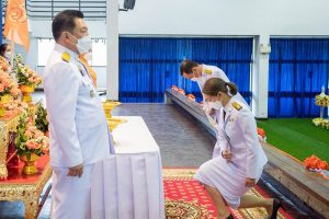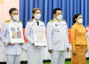 เมื่อวันนี้ 25 ก.พ.65 เวลา 13.00 น. นายวันชัย คงเกษม ผู้ว่าราชการจังหวัดสมุทรปราการ เป็นประธานในพิธี มอบลายผ้าพระราชทาน “ผ้าขิดลายนารีรัตนราชกัญญา” ให้กับกลุ่มทอผ้า และกลุ่มผู้ผลิตผ้าในจังหวัดสมุทรปราการ นำไปใช้ทอผ้า ผลิตผ้าตามอัตลักษณ์ภูมิปัญญาท้องถิ่น ณ ห้องประชุม ชั้น 3 ศาลาประชาคม อำเภอเมือง จังหวัดสมุทรปราการ โดยมี นางนงรัตน์ คงเกษม ประธานแม่บ้านมหาดไทย จังหวัดสมุทรปราการ นางสาวนันทิดา แก้วบัวสาย นายก อบจ.สมุทรปราการ นายศุภมิตร ชินณศรี นายชัยพจน์ จรูญพงศ์ รองผู้ว่าจังหวัดสมุทรปราการ นายประทีป นทีทวีวัฒน์ ปลัดจังหวัดสมุทรปราการ นายภูธนะ ชมภูมิ่ง หัวหน้าสำนักงานจังหวัดสมุทรปราการ นางสาวสุกานดา แสงวงษ์ พัฒนาการจังหวัดสมุทรปราการ นางวินิจ บัวเจริญ ผู้อำนวยการกลุ่มงานส่งเสริมการพัฒนาชุมชน นายชวลิต ทรงกิตติ นายอำเภอเมืองสมุทรปราการ ตลอดจน หัวหน้าส่วนราชการ นายกกิ่งกาชาดอำเภอ กลุ่มทอผ้า และผู้ผลิตผ้าในจังหวัดสมุทรปราการ ขึ้นรับมอบแบบลายผ้าพระราชทาน “ผ้าขิดลายนารีรัตนราชกัญญา” เบื้องหน้าพระฉายาลักษณ์ สมเด็จพระเจ้าลูกเธอ เจ้าฟ้าสิริวัณณวรี นารีรัตนราชกัญญา ตามลำดับ