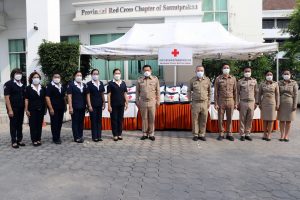 เหล่ากาชาดจังหวัดสมุทรปราการ มอบถุงธารน้ำใจช่วยเหลือครอบครัวผู้ป่วยและมีความเสี่ยงสูงจากการแพร่ระบาดของเชื้อไวรัสสายพันธุ์โอมิครอน(Omicron)