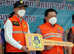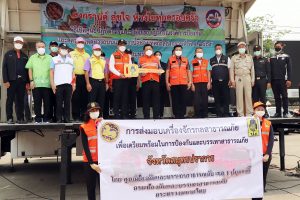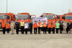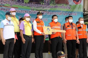 จังหวัดสมุทรปราการ รับมอบเครื่องจักรกลสาธารณภัยเพื่อเตรียมความพร้อมในการป้องกันและลดอุบัติเหตุทางถนนและทางน้ำในช่วงเทศกาลสงกรานต์ พ.ศ.2565