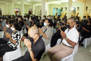 วันที่ 3 พ.ค.65 ที่ศาลาการเปรียญ จตุรมุข วัดพุทธภาวนาราม ถนนสุขุมวิท ตำบลท้ายบ้านใหม่ อำเภอเมือง จังหวัดสมุทรปราการ ชุมชนวัดพุทธภาวนาราม นำโดย ผู้ใหญ่กบ ชูชาติ ดุลยปภัสศร ผู้ใหญ่บ้าน หมู่.3 ต.ท้ายบ้านใหม่ ร่วมเป็นเจ้าภาพพิธีสวดพระอภิธรรมสรีระสังขาร พระอธิการสำเนา สิริปญฺโญ (สำเนา คำแหง) อดีตเจ้าอาวาสวัดพุทธภาวนาราม โดยมี สจ.สมถวิล พูลเกตุ สมาชิกสภา อบจ.สมุทรปราการ จุดธูปเทียนบูชาพระรัตนตรัย อาจารย์อุดม ดีกระจ่าง ประธานกรรมการเทคนิค สนามมวยลุมพินี จุดธูปเทียนบูชาพระธรรม และนายฤทธิชัย พรสุธารักษ์ จุดเครื่องทองน้อยหน้าศพ โดยมี พระสงฆ์จากวัดหนามแดง 4 รูป สวดสหัสสนัย คณะเจ้าภาพ พร้อมด้วยนางบุญเทียน ถิ่นบางบน ร่วมทอดผ้าไครบังสุกุล ถวายจตุปัจจัยเครื่องไทยธรรม พระสงฆ์อนุโมทนา กรวดน้ำ รับพร