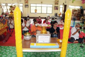 เมื่อเวลา 11.00 น.ของวันที่ 10 ก.ค.65 สจ.สมถวิล พูลเกตุ สมาชิกสภาองค์การบริหารส่วนจังหวัดสมุทรปราการผู้ใหญ่กบ ชูชาติ ดุลยปภัสศร ผู้ใหญ่บ้านหมู่.3 ต.ท้ายบ้านใหม่ พร้อมด้วย ผู้ช่วยผู้ใหญ่บ้าน คณะกรรมการชุมชน นำพ่อค้า ประชาชน ชาวชุมชนวัดพุทธภาวนาราม และชุมชนใกล้เคียง ร่วมขบวนแห่เทียนจำนำพรรษา ประจำปี 2565 รอบชุมชน ก่อนมุ่งหน้าเข้าสู่วัดพุทธภาวนาราม ต.ท้ายบ้านใหม่ อ.เมืองสมุทรปราการ เพื่อทำพิธีถวายเทียนพรรษา โดยมี พระมหาวิโรจน์ อคฺคปญฺโญ เจ้าอาวาสวัดพุทธภาวนาราม เป็นประธานฝ่ายสงฆ์ ในการรับถวายเทียนจำนำพรรษา และจตุปัจจัยไทยธรรม สำหรับ ยอดเงินจากการทำบุญถวายเทียนจำนำพรรษา ในครั้งนี้ จำนวน 88,000 บาท (แปดหมื่นแปดพันบาทถ้วน) ถวายให้กับทางวัดได้นำไปพัฒนาปรับปรุงถาวรวัตถุภายในวัดพุทธภาวนาราม ต่อไป