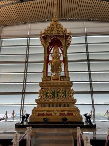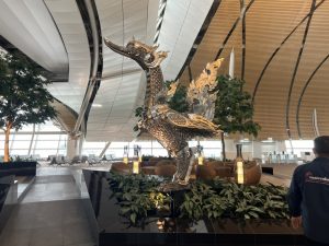 นอกจากนี้ ภายในชั้น 3 ของอาคารได้รับการออกแบบให้เป็นสวน ตกแต่งด้วยสัตว์หิมพานต์ตามคติความเชื่อไทยโบราณ อาทิ กินนร , กินรี, เหมราชและหงส์สา ส่วนชั้น 2 เป็นพื้นที่สำหรับผู้โดยสารขาเข้า ได้รับการออกแบบเป็นสวนสัญจรผ่าน จัดแสดงงานภูมิทัศน์ผสมผสานกับศิลปธรรมของไทย เช่น หุ่นละครเล็ก , หนังใหญ่ , หัวโขน ,ว่าวไทย เป็นต้น