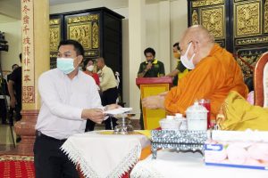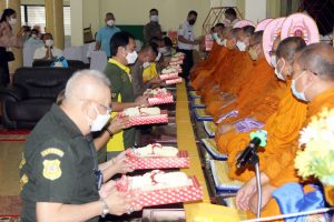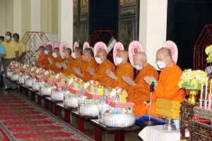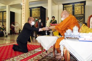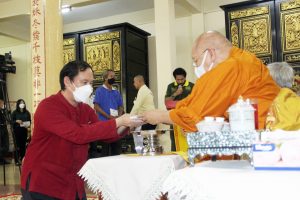 โดยมี พระครูปลัดสุวัฒนศีลคุณ (พระครูแจ้) เจ้าอาวาสวัดบางพลีใหญ่กลาง ทำหน้าที่เป็นผู้ดำเนินการด้านศาสนพิธีทักษิณานุประทาน คณะสงฆ์จากวัดบางพลีใหญ่กลาง จำนวน 10 รูป สวดมาติกาแด่ ผู้ก่อตั้งและอดีตประธานมูลนิธิร่วมกตัญญู และมอบอุปกรณ์ทางการแพทย์ให้แก่ โรงพยาบาลส่งเสริมสุขภาพตำบล จังหวัดต่างๆ มอบเครื่องกระตุกหัวใจไฟฟ้าอัตโนมัติ (AED) ให้แก่ ศาลากลางจังหวัดสมุทรปราการ สถานีตำรวจในสังกัดตำรวจภูธรจังหวัดสมุทรปราการ และที่ว่าการอำเภอบางพลี รวมกว่า 40 หน่วยงาน เพื่อสนับสนุนการแพทย์ของโรงพยาบาลที่ห่างไกล รวมมูลค่า12,879,400 บาท (สิบสองล้านแปดแสนเจ็ดหมื่นเก้าพันสี่ร้อยบาทถ้วน) พิธีเจริญพระพุทธมนต์ ถวายภัตตาหารเพล แด่คณะสงฆ์ นำโดย พระเดชพระคุณ พระพรหมวชิราธิบดี (พีร์ สุชาโต) รองสมเด็จพระราชาคณะ อธิบดีสงฆ์วัดมหาธาตุยุวราชรังสฤษฎิ์ ที่ปรึกษาเจ้าคณะกรุงเทพมหานครนายกสภามหาวิทยาลัย มหาจุฬาลงกรณราชวิทยาลัย มอบอุปกรณ์ทางการแพทย์ให้โรงพยาบาลที่ขาดแคลน มอบเครื่องอุปโภค บริโภค ให้แก่ข้าราชการ และลูกจ้าง อำเภอบางพลี สภ.บางพลี สภ.บางแก้ว สภ.บางปู และกองพิสูจน์หลักฐาน จ.สมุทรปราการ