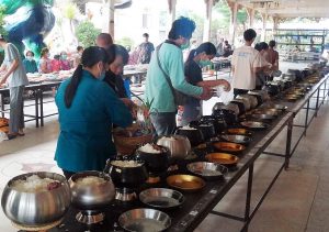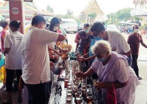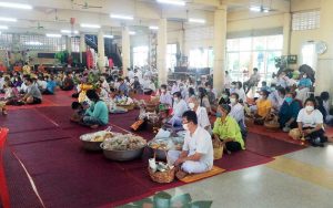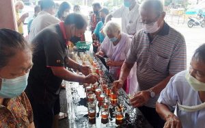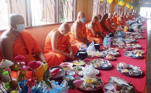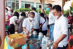 เมื่อเวลา 08.00 น.ของวันที่ 10 ก.ย.65 ที่ศาลาการเปรียญ วัดตำหรุ ต.บางปูใหม่ อ.เมือง จ.สมุทรปราการ พุทธศาสนิกชนชาวไทยเชื้อสายมอญ และอุบาสก อุบาสิกา ผู้ถือศีลปฏิบัติธรรม ชาวตำบลบางปูใหม่ และตำบลใกล้เคียง ต่างเดินทางมาร่วมพิธีทำบุญตักบาตรน้ำผึ้ง และอาหารคาว หวาน ถวายแด่พระสงฆ์ เนื่องในโอกาสวันพระขึ้น 15 ค่ำ เดือน 10 ซึ่งตรงกับวันสำคัญของชาวไทยเชื้อสายมอญ ก็คือประเพณีตักบาตรน้ำผึ้ง ซึ่งเป็นประเพณีหนึ่งของชาวบ้านที่แสดงความศรัทธาในพระพุทธศาสนา โดยมี พระครูสุธรรมวิธาน (พระอาจารย์สาม) เจ้าอาวาสวัดตำหรุ เป็นประธานฝ่ายสงฆ์ นำคณะพระภิกษุสงฆ์ วัดตำหรุ เจริญพระพุทธมนต์ เพื่อความเป็นสิริมงคล