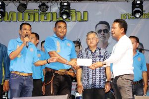 โดยมี ส.ส.วุฒินันท์ บุญชู ส.ส.สมุทรปราการ เขต 4 พร้อมด้วย นาวาเอกอนุศักดิ์ นาคทิม นายกเทศมนตรีตำบลบางเมือง นายไพรัตน์ จันทร์ไชยแก้ว นายกสมาคมชาวใต้สมุทรปราการ ผู้ใหญ่ชวพล สุขสมบุญ ผู้ใหญ่บ้านหมู่ 8ตำบลบางเมืองใหม่ สท.ถนอมศรี ทางเหลือ สมาชิกสภาเทศบาลตำบลบางปู สท.วันเพ็ญ สุขสมบุญ สมาชิกสภาเทศบาลตำบลบางเมือง ร.ต.อ.อาภรณ์ ปลอดเล้า รอง สวป.สำโรงเหนือ ผู้ใหญ่อรุณ บุญเพชรทอง และนาวาโทสุเทพ วงศ์สุนทร ที่ปรึกษาฝ่ายจัดงานประเพณีบุญสารทเดือนสิบ ชาวใต้สมุทรปราการ ประจำปี 2565 ร่วมกันมอบถ้วยรางวัล