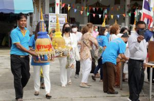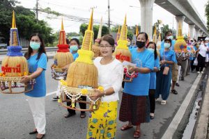 คณะที่ปรึกษา คณะกรรมการฝ่ายจัดงานประเพณีบุญสารทเดือนสิบ จัดขบวนแห่หมุรับงานประเพณีบุญสารทเดือนสิบ ชาวใต้สมุทรปราการ ประจำปี 2565จากหน้าโรงเรียนนายเรือ สู่วัดบางนางเกรง