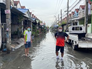 1.3 หมู่บ้านซิตี้วิลเลจ ทม บางปู มีน้ำท่วมขังถนนในชุมชน สูงประมาณ 15 ซม ขณะนี้ระดับน้ำยังทรงตัว