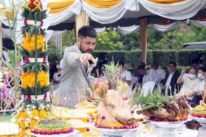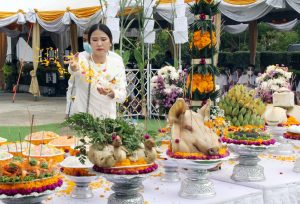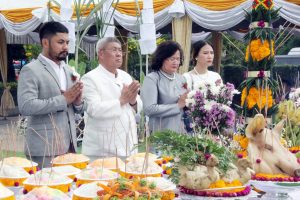 เมื่อเวลา 10.15 น. ของวันที่ 30 กันยายน 2565 ที่มณฑลพิธีพื้นที่ตลาดนัดเรือบิน ตำบลบางปลา อำเภอบางพลี จังหวัดสมุทรปราการ นายบัลลังก์ แตงอ่อน ผู้บริหารตลาดนัดเรือบิน พร้อมด้วยครอบครัวแตงอ่อน ประกอบไปด้วย นางลัดดาวัลย์ ณ บำรุง นายรักธรรม แตงอ่อน กรรมการผู้จัดการ บริษัท เก็ท บิลเดอร์ จำกัด และประชาชนชาวบางพลี ได้ฤกษ์มงคล วันเสาร์ที่ 30 กันยายน 2565 ขึ้น 5 ค่ำ เดือน 11 จัดพิธีวางศิลาฤกษ์ในการจัดสร้างองค์ท้าวเวสสุวรรณ จำนวน 3 องค์ โดยมีขนาดความสูงขององค์ประธาน มีความสูง 4 เมตร 70 ซม. องค์บริวารทั้งซ้าย และขวา มีความสูง 2 เมตร 80 ซม.เป็นองค์ประดิษฐานบริเวณทิศตะวันออกของตลาดนัดเรือบิน เพื่อเป็นสถานที่ยึดเหนี่ยว และศูนย์รวมจิตใจของประชาชน ทั้งในและนอกพื้นที่ โดยมี นายวันชัย คงเกษม ผู้ว่าราชการจังหวัดสมุทรปราการ เป็นประธานในพิธี