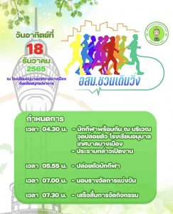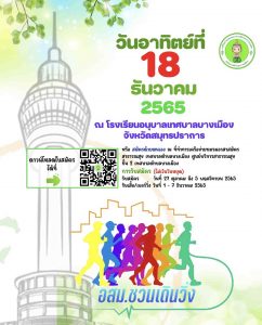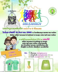 เครือข่ายชมรมอาสาสมัครสาธารณสุข (อสม.).เทศบาลตำบลบางเมือง ชวนเดินวิ่ง ระยะทาง 5 กิโลเมตร วันอาทิตย์ที่ 18 ธันวาคม 2565 โดยรายได้ทั้งหมดหลังหักค่าใช้จ่าย มอบให้เครือข่ายชมรมอาสาสมัครสาธารณสุข (อสม.).เทศบาลตำบลบางเมือง เพื่อช่วยเหลือสมาชิกเครือข่ายชมรม กรณีเจ็บป่วย หรือเป็นผู้มีภาวะพึ่งพิง (ติดเตียง) และเสียชีวิต