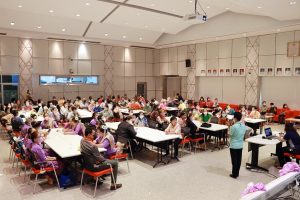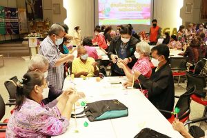 โดยบรรยากาศภายในงาน มีกิจกรรมการตรวจสุขภาพเบื้องต้น ,การให้ความรู้เกี่ยวกับแนวทางการดูแลตนเองของผู้สูงอายุ โดยใช้หลัก 10 อ.ประกอบด้วย 1. อาหาร ผู้สูงอายุยังคงต้องการสารอาหารต่าง ๆ ที่ใกล้เคียงกับวัยผู้ใหญ่ แต่ควรลดอาหารประเภทไขมันและคาร์โบไฮเดรตลง ส่วนอาหารประเภทโปรตีนควรเป็น เนื้อสัตว์ที่ย่อยง่าย เช่น เนื้อปลาและไข่ขาว ส่วนไข่แดงควรกินไม่เกินสัปดาห์ละ 3 ฟอง นอกจากนี้ควรกินผักและถั่ว รวมทั้งผลไม้ให้มาก แต่ควรเป็นผลไม้ที่ไม่มีรสหวานจัด จนเกินไป เพราะอาจเป็นสาเหตุทำให้เกิดโรค เช่น โรคเบาหวาน ได้ 2. ออกกำลังกาย เพื่อให้มีร่างกายแข็งแรง สามารถเคลื่อนไหวได้อย่างคล่องแคล่ว ซึ่งจะทำให้การทรงตัวดีขึ้น ไม่หกล้มง่าย ผู้สูงอายุจึงควรออกกำลังกายสัปดาห์ละ 3-4 ครั้ง 3. อนามัย ผู้สูงอายุควรรู้จักสังเกตการทำงานของระบบต่าง ๆ ในร่างกาย เช่น ระบบขับถ่าย ควรพยายามลด ละ เลิกสิ่งที่จะเป็นอันตรายต่อสุขภาพ เช่น เหล้า บุหรี่ และพฤติกรรมเสี่ยงต่าง ๆ สำหรับผู้ที่อายุ 65 ปีขึ้นไป ควรตรวจสุขภาพเป็นประจำทุกปี 4. อุจจาระ ปัสสาวะ ผู้สูงอายุจะต้องให้ความสนใจเรื่องการขับถ่ายให้มากเป็นพิเศษ หากมีปัญหาขับถ่ายยาก ถ่ายลำบาก หรือกลั้นการขับถ่ายไม่ได้ ก็ควรรีบแก้ ปัญหาไปตามสาเหตุ 5. อากาศ และแสงอาทิตย์ ผู้สูงอายุควรได้อยู่ในสถานที่ที่มีสภาพแวดล้อมที่ดี เป็นธรรมชาติ มีอากาศบริสุทธิ์ และควรได้รับแสงแดดบ้าง 6. อารมณ์ ผู้สูงอายุจะมีอารมณ์เปลี่ยนแปลงง่าย เช่น หงุดหงิด โมโห โกรธง่าย ทำให้ขาดสติในการพิจารณาไตร่ตรองเหตุผล ก่อให้เกิดความขัดแย้งกับบุคคลอื่นได้ ง่าย และต้องหาวิธีควบคุมอารมณ์ซึ่งมีหลายวิธี เช่น การทำสมาธิ การศึกษาธรรมะ จะช่วยให้ผ่อนคลาย มีสติมากขึ้น 7. อดิเรก ผู้สูงอายุควรหางานอดิเรกทำเพื่อเบี่ยงเบนความสนใจหรือลดการหมกมุ่นในสิ่งที่ทำให้ไม่สบายใจ เป็นการใช้เวลาว่างให้เป็นประโยชน์ 8. อบอุ่น การเป็นบุคคลที่มีบุคลิกโอบอ้อม เอื้อเฟื้อเผื่อแผ่ ช่วยเหลือสมาชิกใน ครอบครัวและบุคคลอื่น เพื่อให้เกิดสัมพันธภาพที่ดีต่อกัน 9. อุบัติเหตุ ระมัดระวังไม่ให้เกิดอุบัติเหตุโดยวีการต่าง ๆ เช่น สายตายาวต้องใส่แว่นสายตา ได้ยินไม่ชัดเจนต้องไปตรวจหูเพื่อแก้ไข ถ้ามีสิ่งแวดล้อมไม่เหมาะสมต้อง ไปปรับสภาพแวดล้อมให้เหมาะสม และ10. อนาคต ผู้สูงอายุต้องเตรียมเงินและที่อยู่อาศัยเพื่อเป็นหลักประกันในการดำเนินชีวิต โดย รพ.สต.บางโปรง ตลอดจน กิจกรรมการแสดงจากชมรมผู้สูงอายุฯ กิจกรรมฝึกสมาธิ การทำไม้เสียบธนบัตร ที่ผู้สูงอายุได้ลงมือทำด้วย