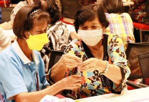 ทั้งนี้ โครงการดังกล่าวจัดขึ้นเป็นประจำทุกเดือน เดือนละ 1 ครั้ง โดยกองสวัสดิการสังคม อบต.บางโปรง เพื่อให้ผู้สูงอายุได้ใช้เวลาว่างให้เป็นประโยชน์ ได้ฝึกสมาธิในการทำกิจกรรมต่างๆ ได้พบปะพูดคุยแลกเปลี่ยนความคิดเห็นกับเพื่อนๆ ในวัยเดียวกัน ได้รับความรู้ทั้งในเรื่องของการฝึกสมาธิ ฝึกอาชีพ และในเรื่องของสุขภาพ เป็นการลดอาการติดบ้านของผู้สูงอายุที่อาจเป็นสาเหตุหนึ่งของโรคซึมเศร้าในผู้สูงอายุ