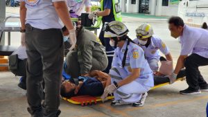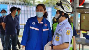 เมื่อเวลา 12.00 น.ของวันที่ 24 พฤศจิกายน 2565 บริษัท ซี.พี. อุตสาหกรรมบรรจุภัณฑ์ จำกัด บริษัท ในเครือเจริญโภคภัณฑ์ จัดโครงการฝึกอบรมเชิงปฏิบัติการหลักสูตรการฝึกซ้อมดับเพลิงและการอพยพหนีไฟ ประจำปี ภายในบริษัท ซี.พี. อุตสาหกรรมบรรจุภัณฑ์ จำกัด นิคมอุตสาหกรรมบางพลี ซอย 5 อำเภอบางเสาธง จังหวัดสมุทรปราการ โดยมี เจ้าหน้าที่งานป้องกันและบรรเทาสาธารณภัยเทศบาลตำบลบางเสาธง พร้อมด้วย เจ้าหน้าที่ทีมแพทย์ พยาบาล จากโรงพยาบาลจุฬารัตน์ 5 โรงพยาบาลบางนา 2 เจ้าหน้าที่และอาสาสมัครมูลนิธิร่วมกตัญญู นำโดย ดร.รัตนา สมสกุลรุ่งเรือง ประธานมูลนิธิร่วมกตัญญู เจ้าหน้าที่ตำรวจ สภ.บางเสาธง และพนักงาน บริษัท ซี.พี. อุตสาหกรรมบรรจุภัณฑ์ จำกัด เข้าร่วมการฝึกซ้อมดับเพลิงและการอพยพหนีไฟ