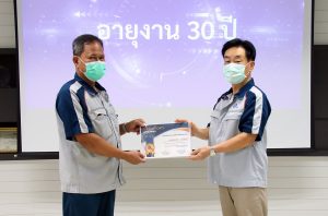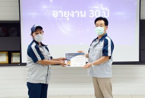 บริษัท สยาม ยีเอส แบตเตอรี่ จำกัด จัดพิธีมอบใบประกาศเกียรติคุณให้กับพนักงานผู้ปฏิบัติงาน อายุงาน 30 ปี 20 ปี และ 10 ปี เพื่อเชิดชูเกียรติแก่พนักงานผู้ปฏิบัติงาน