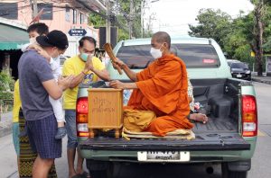 ผู้ใหญ่บ้านหมู่ 5 ต.บางเมืองใหม่ จัดกิจกรรมทำบุญตักบาตรข้าวสารอาหารแห้ง พระสงฆ์ 19 รูป เนื่องในวันพ่อแห่งชาติ 5 ธันวาคม 2565