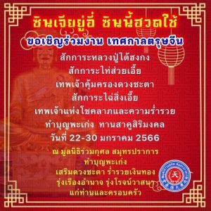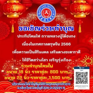 มูลนิธิร่วมกุศล สมุทรปราการ ขอเชิญชวน พ่อค้า ประชาชน และพุทธศาสนิกชน ร่วมทำบุญฉลองเทศกาลปีใหม่ 2566 และฉลองเทศกาลตรุษจีน 2566 ระหว่างวันที่ 20-30 มกราคม 2566