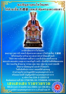 มูลนิธิร่วมกุศล สมุทรปราการ นำโดย นายเอนกพงศ์ คูณทรัพย์สิน ประธานมูลนิธิร่วมกุศล สมุทรปราการ ขอเชิญชวน พ่อค้า ประชาชน และพุทธศาสนิกชน ร่วมทำบุญฉลองเทศกาลปีใหม่2566 และฉลองเทศกาลตรุษจีน 2566 ระหว่างวันที่ 20-30 มกราคม 2566 เพื่อความเป็นสิริสวัสดิ์พิพัฒนมงคล มีความเจริญรุ่งเรืองด้วย วรรณะ สุขะ พละ ปฏิภาณ ธนสารสมบัติ มีพลานามัยสมบูรณ์ และสำเร็จสมหวังในสิ่งอันพึงปรารถนา ตลอดปี ด้วยการขอพร ดังนี้ 1.ไหว้ขอพรองค์หลวงปู่ไต้ฮงกง 2.ไหว้ขอพรฝากดวงชะตาเทพเจ้าไท่ส่วยเอี๊ย คุ้มครองดวงชะตา สุขภาพแข็งแรง บังเกิดลาภผล บุญวาสนาโชติช่วง โชคลาภเพิ่มพูน อยู่เย็นเป็นสุข 3.ไหว้ขอพรเทพเจ้าไฉ่สิ่งเอี้ย เทพเจ้าแห่งโชคลาภ เงินตรา ร่ำรวย เงินทอง 4.ทำบุญถวายประทีปโคมไฟจีน(เต็งลั้ง)ชีวิตสว่างไสวเจริญรุ่งเรืองตลอดปี 5.ลงชื่อพะเก่ง สวดเสริมดวง ความครัวเป็นสุข สะเดาะห์เคราะห์ เสริมโชคลาภ เสริมชะตา ความมั่งคงถาวร เริ่มแล้ว ตั้งแต่บัดนี้ เป็นต้นไป ณ มูลนิธิร่วมกุศลสมุทรปราการ ถ.ท้ายบ้าน17 อ.เมือง จ.สมุทรปราการ ติดต่อสอบถามงานฝ่ายกิจกรรม/ฝ่ายเลขาฯ021758789 021758668