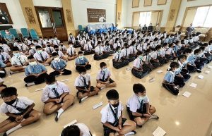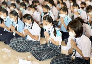 คณะครู นักเรียนโรงเรียนแพรกษาวิเทศศึกษาร่วม สวดมนต์อธิษฐานจิตถวายเป็นพระราชกุศล แด่เจ้าฟ้าพัชรกิติยาภาฯทรงหายจากพระอาการประชวร
