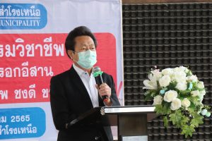 ที่ลานอเนกประสงค์ สำนักงานเทศบาลตำบลสำโรงเหนือ อำเภอเมืองสมุทรปราการ กองสวัสดิการสังคม เทศบาลตำบลสำโรงเหนือ จัดโครงการอบรมวิชาชีพ ประจำปีงบประมาณ 2566 หลักสูตร “ไส้กรอกอีสาน และเครื่องดื่ม สร้างอาชีพ ชงดี ขายได้” โดยมี ดร.ลือกฤต เพชรบดี นายกเทศมนตรีตำบลสำโรงเหนือ เป็นประธานกล่าวเปิดโครงการและนายวิทธวัช สิริพงศ์พันธ์ ผู้อำนวยการกองกองสวัสดิการสังคม เทศบาลตำบลสำโรงเหนือ กล่าวรายงานวัตถุประสงค์ของโครงการฯ พร้อมด้วย คณะผู้บริหาร สมาชิกสภาเทศบาล คณะทำงาน รวมทั้งหัวหน้าส่วนราชการ และประชาชนในพื้นที่ตำบลสำโรงเหนือ เข้าร่วมพิธีเปิดโครงการฯ ในครั้งนี้