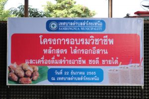 เทศบาลตำบลสำโรงเหนือ จัดโครงการอบรมวิชาชีพ ประจำปีงบประมาณ 2566 หลักสูตร “ไส้กรอกอีสาน และเครื่องดื่ม สร้างอาชีพ ชงดี ขายได้” เพื่อช่วยเหลือ และร่วมพัฒนาความเป็นอยู่ของประชาชนในพื้นที่ให้ดียิ่งขึ้น
