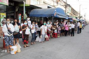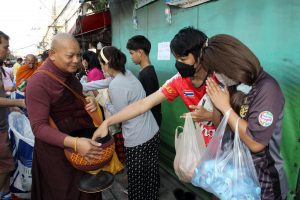 โดยมี นายวรพร อัศวเหม ผู้เชี่ยวชาญประจำตัวสภาผู้แทนราษฎร นายทองคำ ผลโพธิ์ ประธานชุมชนเจริญสุข ร.ต.อ.ภาณุวิชช์ วิชัยพล ตลอดจน กลุ่มพี่น้องชาวใต้ สมุทรปราการ และพ่อค้า ประชาชน กลุ่มผู้ใช้แรงงาน ที่อาศัยอยู่ภายในการเคหะชุมชน สมุทรปราการ และชุมชนใกล้เคียง ต่างออกมาร่วมกันทำบุญตักบาตร ข้าวสารอาหารแห้ง พระสงฆ์ เพื่อความเป็นสิริมงคล ต้อนรับสิ่งดีดี ในวันปีใหม่ 2565