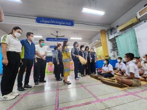 วันพฤหัสบดีที่ 5 มกราคม 2566 เวลา 10.30 น. นางสาวอรวรรณ ชิณศรี ประธานเเม่บ้านมหาดไทยจังหวัดสมุทรปราการ พร้อมคณะเเม่บ้านมหาดไทยจังหวัดสมุทรปราการ เยี่ยมชมโรงเรียนเทศบาล 2 (วัดใน) สังกัดเทศบาลนครสมุทรปราการ ซึ่งได้ดำเนินการตามแนวพระราชดำริสมเด็จพระกนิษฐาธิราชเจ้า กรมสมเด็จพระเทพรัตนราชสุดาฯ สยามบรมราชกุมารี ” โครงการสร้างความมั่นคงทางอาหาร บ้านนี้มีรัก ปลูกผักกินเอง ” เพื่อให้เยาวชนได้เรียนรู้ และแบ่งปันให้ผู้ปกครองนำไปประกอบอาหาร อีกทั้งยังเป็นโรงเรียนที่ผ่านการประเมิน “ศูนย์การเรียนรู้ปรัชญาเศรษฐกิจพอเพียงด้านการศึกษา แห่งแรกในจังหวัดสมุทรปราการ” และได้รับชมการแสดงดนตรีของเยาวชนที่ได้รับรางวัลรองชนะเลิศ อันดับที่ 2 จากการแข่งขันทักษะวิชาการ มหกรรมการศึกษาท้องถิ่นระดับประเทศ ครั้งที่ 12 ติดตามงานแม่บ้านมหาดไทยใส่ใจสิ่งแวดล้อม ทางโรงเรียนได้มีการจัดการคัดแยกขยะ ส่งเสริมให้เยาวชนและครอบครัวรู้จักคัดแยกขยะในครัวเรือน เพื่อความยั่งยืนของสิ่งแวดล้อม และรับชมการสาธิต การทำแส้ปัดยุง อนุรักษ์ภูมิปัญญาท้องถิ่นไทย โดยนักเรียน