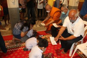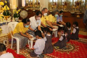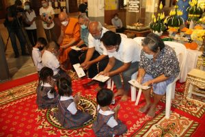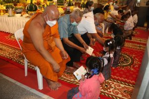 ด้านท่านพระครูสุนทรพัฒนกิจวิธาน(สันทาน ธมฺมสันทโน) เจ้าอาวาสวัดสาขลา กล่าวว่า ได้มีการมอบทุนการศึกษาให้กับนักเรียน จำนวน 176 ทุน ทุนละ 500 บาท ซี่งเป็นนักเรียนโรงเรียนชุมชนบ้านสาขลา พร้อมกันนี้ยังได้มอบเครื่องบริโภคให้กับชาวบ้านที่ใกล้เคียงวัดสาขลาทั้ง 4 หมู่ ประกอบด้วยหมู่ที่ 3 หมู่ที่ 4 หมู่ที่ 5 และหมู่ที่ 7 จำนวน 1,300 ชุด อาทิ ข้าวสารจำนวน 5 กิโลกรัม น้ำมันพืชชนิดขวดขนาด 1 ลิตรและน้ำปลาขนาด 650 มิลลิลิตร อีกด้วย