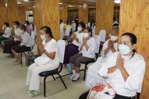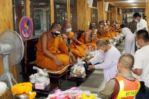 วัดบางพลีใหญ่กลาง จัดพิธีทำบุญตักบาตร ถวายเป็นพุทธบูชาเนื่องในวันพระ แรม 15 ค่ำ เดือนยี่