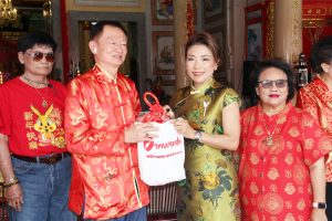 โดยมี นายเอนกพงศ์ คูณทรัพย์สิน ประธานมูลนิธิร่วมกุศล สมุทรปราการ ไพวงศ์ ชำนินาวากุล นายไพฑูรย์ เรืองวานิช รองประธานมูลนิธิร่วม กุลสมุทรปราการ และคณะกรรมการมูลนิธิร่วม กุลสมุทรปราการ ร่วมกันแจกส้มมงคล ให้แก่คณะฯ ให้มีกิน มีใช้ มั่งคั่งตลอดปี