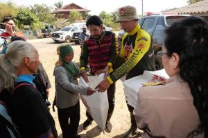 คุณบิณฑ์ บรรลือฤทธิ์ ผู้จัดการฝ่ายกิจกรรมพิเศษ มูลนิธิร่วมกตัญญูและทีมงานอาสามูลนิธิร่วมกตัญญู มอบถุงยังชีพและผ้าห่ม ช่วยบรรเทาภัยหนาว ณ หมู่บ้านป่าไม้ อาข่าพัฒนา ต.แม่ อ.พาน จ.เชียงราย