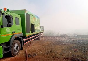 นายก อบจ. ส่งรถฉีดพ่นไอ้น้ำ และรถบรรทุกน้ำ ลงพื้นที่ฉีดพ่นกลุ่มควัน จากเหตุไฟไหม้ขยะพื้นที่เทศบาลเมืองแพรกษา อย่างต่อเนื่อง