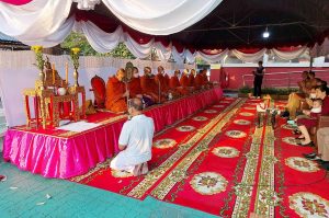 เมื่อเวลา 07.30 น.ของวันที่ 13 กุมภาพันธ์ 2566 ที่สถานีตำรวจภูธรบางแก้ว ตำบล บางแก้ว อำเภอบางพลี จังหวัดสมุทรปราการ ข้าราชการตำรวจ สภ.บางแก้ว ร่วมกับคณะกรรมการตรวจสอบและติดตามการบริหารงานตำรวจสถานีตำรวจภูธรบางแก้ว จัดพิธีทำบุญเลี้ยงพระ บวงสรวงศาลพระพรหม เนื่องในโอกาสครบรอบวันก่อตั้งสถานีตำรวจภูธรบางแก้ว ซึ่งตรงกับวันที่ 13 กุมภาพันธ์ ของทุกปี ณ สถานีตำรวจภูธรบางแก้ว ตำบล บางแก้ว อำเภอบางพลี จังหวัดสมุทรปราการ โดยมีพันตำรวจเอก มงคล อ่อนแก้ว ผู้กำกับการสถานีตำรวจภูธรบางแก้ว เป็นประธานฝ่ายฆราวาส และได้รับความเมตตาจากพระครูวิทูรกิจจาทร (พระครูจาบ) รักษาการแทนเจ้าอาวาสวัดหนามแดง เป็นประธานฝ่ายสงฆ์ นำคณะพระภิกษุสงฆ์ จากวัดหนามแดง จำนวน 9 รูป เจริญพระพุทธมนต์ ประพรมน้ำพระพุทธมนต์ เพื่อความเป็นสิริมงคล จากนั้น ได้ประกอบพิธีบวงสรวงศาลพระพรหม และสิ่งศักดิ์สิทธิ์ประจำประจำ สภ.บางแก้ว โดยมี ซินแส ธีรพัตฌ์ เตชไชยพัตน์ หรืออาจารย์ใหญ่ ประธานศาลเจ้านาจาซาไท้จื้อ ปากน้ำ เป็นเจ้าพิธี และนายทวีโรจน์ หรืออาจารย์ตี๋ เตชไชยพัตน์ ฝ่ายดำเนินงานพิธีบวงสรวง