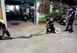 มูลนิธิร่วมกุศล สมุทรปราการ ช่วยเหลือประชาชนจับสัตว์เลื้อยคลาน เข้าบ้านพักภายในซอยเกษมสมุทร