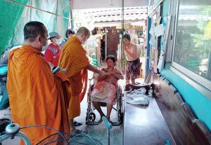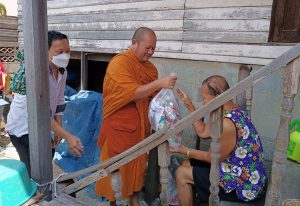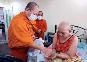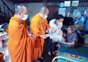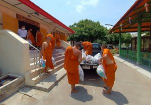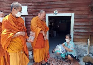 เจ้าอาวาสวัดพุทธภาวนาราม และคณะพระภิกษุสงฆ์ นำถุงยังชีพมอบให้กับกลุ่มผู่เปาะบาง ในชุมชนวัดพุทธภาวนาราม และชุมชนอุ่นอารีย์ ภายใต้โครงการบวร บ้าน วัด โรงเรียน